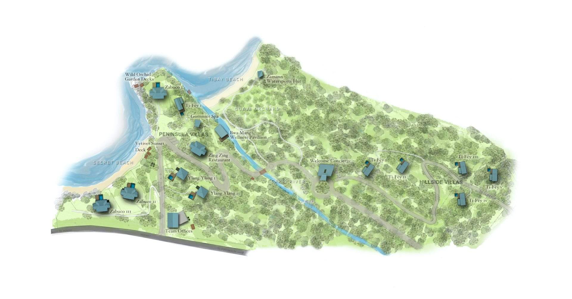 Роскошные удобства курортного отеля Secret Bay дополняют самый непревзойденный отдых на острове. Начните свой день с занятия омолаживающей йогой в велнес-павильоне Bwa Mang на берегу реки, обретите покой в спа-салоне Gommier на вершине деревьев, насладитесь новаторским ужином без меню в ресторане Zing Zing под открытым небом и завершите свой вечер коктейлями на скале edge Vetiver Sunset Deck с видом на Секретный пляж. Это действительно рай найденный.